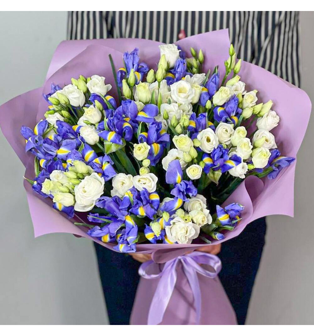 В этом букете 9 прекрасных цветов эустомы, которые приносят нотки изящества и нежности. 25 ярких ирисов добавляют к букету яркости и свежести. Букет украшен атласной лентой и дизайнерской упаковкой, что придает ему особый шарм и элегантность. Этот авторский букет станет прекрасным подарком для выразительных поздравлений или создания неповторимой романтической атмосферы. Подарите этот уникальный букет, чтобы подчеркнуть особенность момента и принести радость вашим близким.